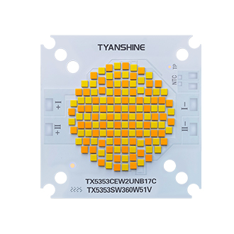TX5353SW360是廣州市添鑫光電有限公司雙色溫光模組系列的一款產(chǎn)品,該產(chǎn)品適用于影視照明等。高顯色指數(shù),對(duì)人眼敏感的紅、綠色有更佳的還原性。色溫顯指高穩(wěn)定封裝,在85-120°C結(jié)溫下依然表現(xiàn)穩(wěn)定。高光效封裝,85°C結(jié)溫下CRI95白光光效超過(guò)85Lm/W。產(chǎn)品指數(shù)和參數(shù)如下,如有還有其他疑問(wèn),可查看以上規(guī)格書及相關(guān)附件,或者致電至我們公司,聯(lián)系方式可在首頁(yè)最下方-聯(lián)系我們 - 聯(lián)系方式里查找。真誠(chéng)希望能于貴公司合作,謝謝!
